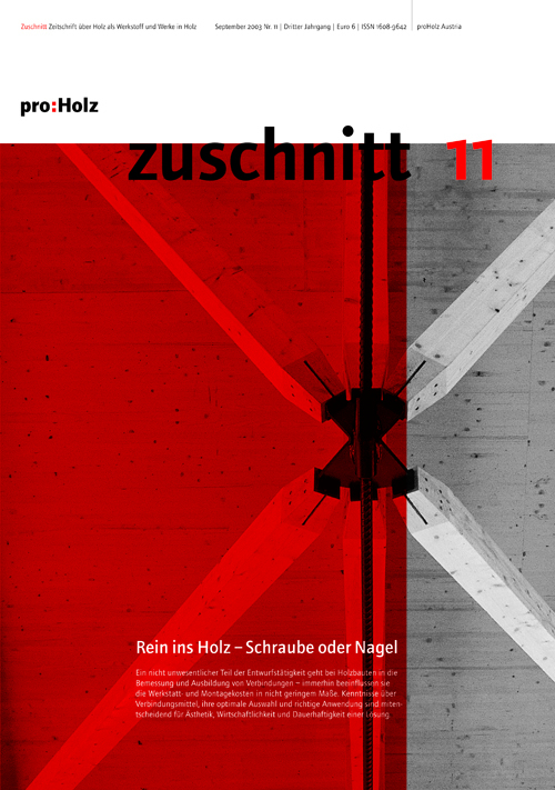 Als konstruktives Verbindungsmittel über die grobe Sicherung von Holzverbindungen hinaus hatte der Nagel ein kurzes Revival in der Brettstapeldecke. Die unverleimt aneinandergenagelten Bretter als Decke hatten in ihrer Rauheit einen gewissen Reiz. Interessant fand ich vor allem die Möglichkeit, auf einfache Weise gewölbte Decken herzustellen. Aber schon beim Übergang der Holzfläche vom Innen- in den Außenraum machten die offenen Fugen Probleme. Und jedem Zimmermann, mit dem ich eine Brettstapeldecke realisierte, reichte die einmalige Erfahrung. Die Low Tech-Manufaktur wurde insgesamt als Idiotenarbeit und Rückschritt empfunden. Bei einigen mir bekannten Projekten wurde die Brettstapeltechnologie noch mit teilweiser Verleimung und Aufbeton weitergetrieben bis zu einem Punkt, wo offensichtlich wurde, dass es nur mehr mit Brettschichtholz- oder Brettsperrholzflächen, also mit Leim als Verbindungsmittel weitergehen konnte.