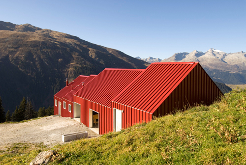 Je wackeliger der Milchpreis, umso besser geht es den Ziegen, denn sie und die Schafe versprechen den Bergbauern eine Alternative, auch wenn sie weniger werden. Lebten 1983 insgesamt 12 322 Ziegen in Graubünden, so sind es heute noch 9351 Tiere. Sie brauchen dennoch neue Ställe und Alpen. Zum Beispiel auf der Alp Puzzetta bei Fourns in der Nähe des Lukmanierpasses auf 1850 m ü. M. Die Alp steht dort schon seit vielen Generationen. Sie reichte für zeitgenössisches Wirtschaften nicht mehr und also schlugen Marlene Gujan und Conrad Pally vor, die alten Gebäude abzubrechen. Ihre neue Alp ist ein Holzständerbau, seine Hülle aus Alu strahlt in dunklem Rot, die präzise gesetzten Nähte, die scharf ausgeschnittenen Fenster geben dem Blechkleid einen eleganten Ton. Die abgetreppte Form ist nicht nur der Topografie geschuldet, sondern auch der Ziegenwirtschaft. Im oberen Teil ist der Melkstand für die 350 Ziegen, dann geht die Milch eine Stufe hinab, wo sie Käse, Joghurt, Quark oder Trinkmilch wird. Die Alp Puzzetta ist ein Pilotprojekt, denn es müssen viele Alpen abgebrochen oder saniert werden. Bauen aber genügt nicht, es braucht auch Vorstellungen, wie aus der Ziegenmilch und ihren Produkten mehr Geld gewonnen werden kann.