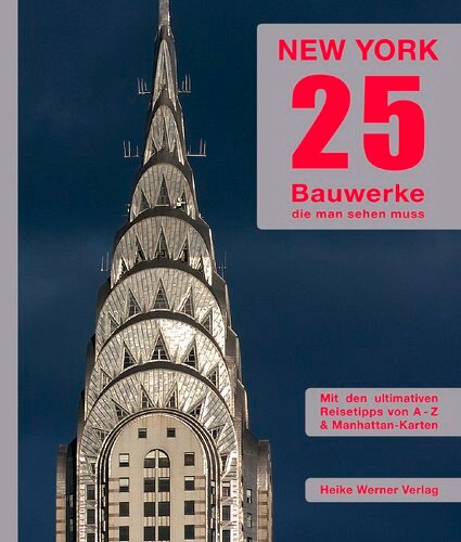 »New York 25. Bauwerke, die man sehen muss. Mit den ultimativen Reisetipps von A-Z & Manhattan-Karten.« Das handliche Reisebuch stellt die 25 New Yorker Bauwerke vor, die man unbedingt sehen sollte: die Ikonen New Yorks, die bedeutenden Bauwerke und Plätze und die Top-Museen der Metropole. In informativen Texten wird die oft spektakuläre Geschichte dieser Highlights erzählt und mit seinen zahlreichen Abbildungen ist das Buch zugleich ein kurzweiliger kleiner Bildband, der das New York-Reisefieber in die Höhe treibt. Für das Rahmenprogramm zum Sightseeing gibt es ein umfangreiches Kapitel mit den ultimativen Reisetipps von A-Z, zu Shopping, Theater, Festivals, Paraden und den vielen anderen interessanten Dingen, die New York zu bieten hat. Als Anhang bietet das Buch außerdem übersichtliche Stadtteilkarten für entspannte Spaziergänge durch Manhattan.