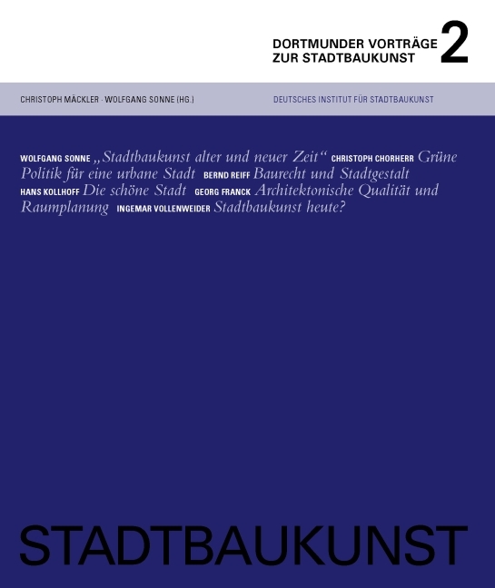 In der Reihe der Dortmunder Vorträge zur Stadtbaukunst des 2008 gegründeten Deutschen Instituts für Stadtbaukunst werden die zentralen Fragen der heutigen Stadtbaukunst behandelt. Architekten, Ingenieure, Ökonomen, Soziologen, Politologen, Verkehrstechniker, Juristen, Historiker und Vertreter anderer mit der Stadt befasster Disziplinen sprechen darüber, woran es unseren Städten heute fehlt und was die Stadtbaukunst leisten sollte. Dabei geht es vor allem darum, diese unterschiedlichen Aspekte der Stadt wieder in der Gestaltgebung der Stadt zusammenzuführen, um eine dauerhafte, lebenswerte und schöne urbane Umwelt zu schaffen.