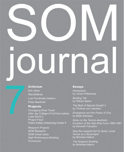 SOM journal 7 ist der jüngste Band einer Reihe, die Arbeiten des Architekturbüros SOM im Kontext einer kritischen Diskussion präsentiert. Diese Außenbewertung durch eine Jury ist ein mutiger Ansatz und eine Besonderheit von SOM. Die Juroren des vorliegenden Bandes sind Erik Olsen, Rita McBride, Peter MacKeith, Juhani Pallasmaa, Luis Fernandez-Galiano, Joan Ockman und Kenneth Frampton. Die Jury traf sich am 19.5.2010 im Seagram Building in New York.