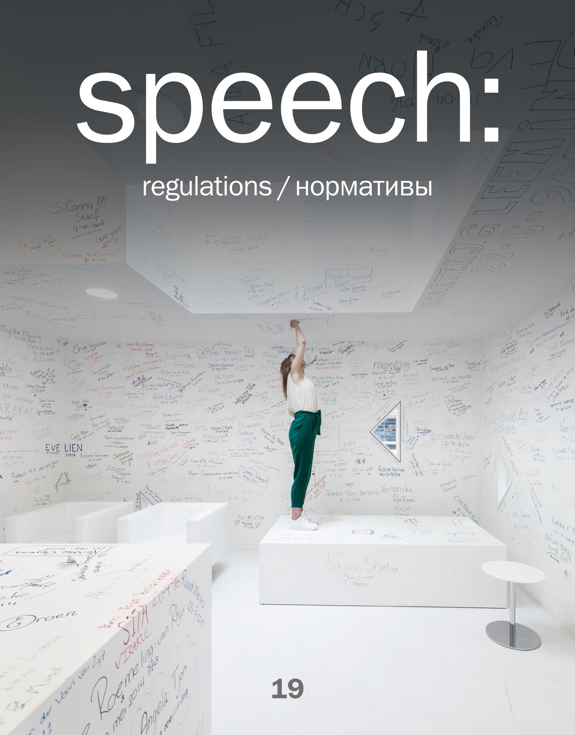 Die 19. Ausgabe des Architekturmagazins speech: untersucht das Thema Vorschriften. Dieses auf den ersten Blick besonders technisch und nomenklatorisch wirkende Thema hat einen ganz entscheidenden Einfluss auf die Architektur, indem es sowohl die visuelle Gestaltung als auch alle, die Durchführung betreffenden Faktoren in hohem Maße bestimmt. Die Vorschriften reichen von städteplanerischen Normen, welche die Schaffung neuer Stadtgebiete und Städte bestimmen, bis hin zu Energieeffizienzstandards und Brandschutzbestimmungen, die kein Architekt bei seiner Planung außer Acht lassen darf.